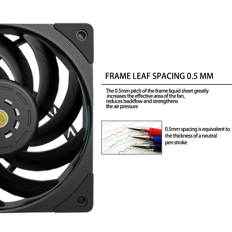 The 0.5mm pitch of the frame liquid sheet greatly increases the effective area of the fan,